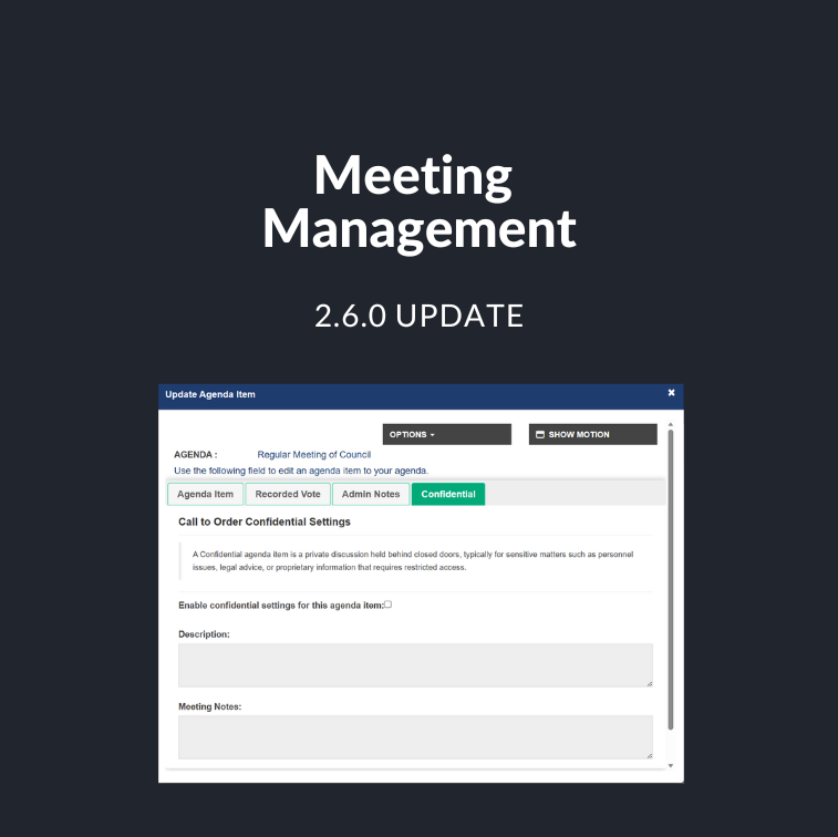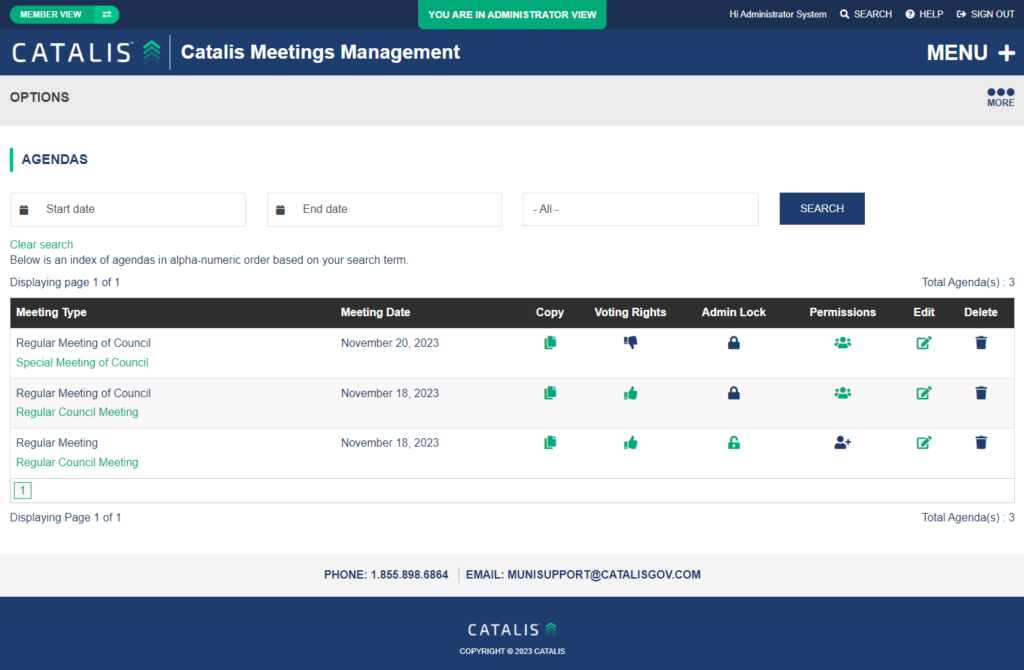 The Meetings has been rebranded as Catalis Meeting Management. The updated platform features a fresh new colour scheme while retaining the reliable functionalities and features that you know and love. We maintain the same great support staff, effective municipal software solutions and a growing development team.