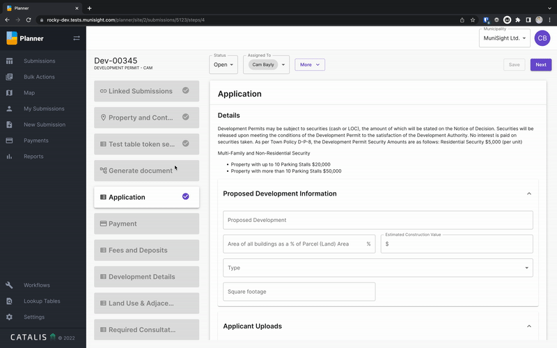- Independently scroll through a submissions steps, set submission expirations, create inspections and link them to permit submissions.