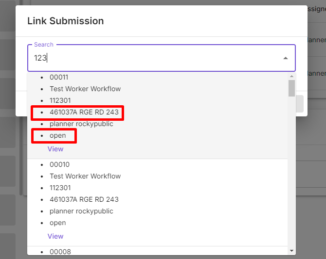 - Linked Submission Search: Users can now view the permit status and owner name directly in the linked submission dropdown search box. This enhancement helps distinguish between multiple permits that share the same number but have different statuses (e.g., inactive, installed, abandoned). This update will prevent third-party workers and pumpers from linking to incorrect submissions.