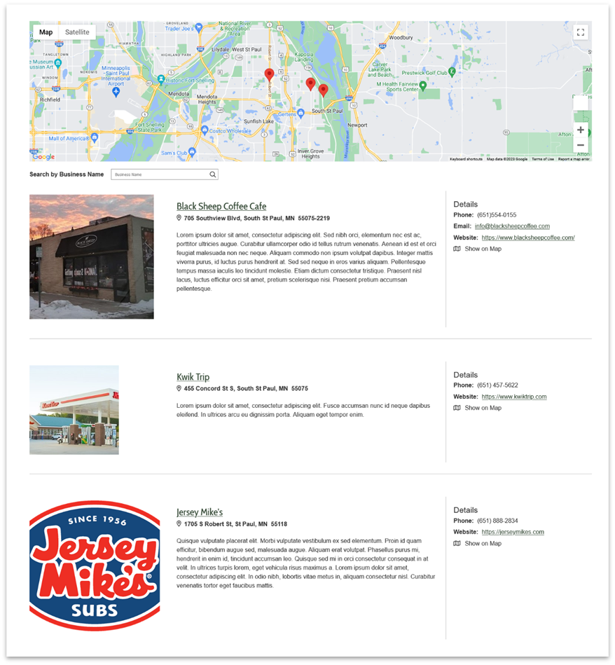 - An easier and more accessible way for your Citizens to find information about the businesses in their community.